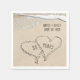 Pair of hearts in beach sand with white frothy ocean surf for 35th wedding anniversary party.