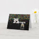 Fun confetti with white text and champagne flute toast for 35th anniversary on black.