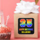 This cheerful, fun, and colourful birthday sticker design features a large number "35" and the message "HAPPY BIRTHDAY,", both coloured with a rainbow spectrum gradient inspired pattern, along with a bold yellow editable name. The background is coloured black. Fun birthday themed stickers like this could be used when wrapping a gift or present being given to celebrate somebody’s 35th birthday, or perhaps might be given out to the guests at a birthday party. [~Z0000480]