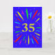 An explosive 35th birthday card! What a wonderful way to send birthday greetings. The number 35 in bright yellow with an explosion of bright colours and stars.