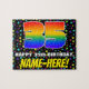 This eye-catching and bold birthday themed jigsaw puzzle design features a large number “35” with a multicolored rainbow spectrum inspired gradient pattern, along with the message “HAPPY 35th BIRTHDAY,”, and an editable recipient name. The background features a joyful, multicolored stars pattern. An exciting, personalised birthday puzzle like this might be a fun way to send birthday greetings to somebody who is celebrating their thirty-fifth birthday. [~Z0000607]