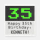 This fun and nerdy birthday paper napkin design features a large green classic computer game style number "35" on a black coloured background. It also features the birthday greeting message "Happy 35th Birthday,", and a name that can be edited. Fun and geeky paper napkins like this might be used at a party being held in celebration of the thirty fifth birthday of a computer programmer, a scientist, or somebody who appreciates video games. [~Z0000404]