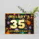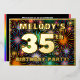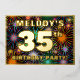 The front of this vibrant thirty-fifth birthday party/celebration foil invitation card design features an editable name, a large number “35th”, the message “BIRTHDAY PARTY!”, and a border. The background of the front has an eye-catching, colourful pattern that resembles bursting celebratory fireworks. The back features personalised details about the event, such as the date, time, place, and any other information that may be relevant. Customisable invitations like these might be a fun way to invite attendees/guests to a birthday gathering/party being held to honour somebody’s 35th birthday. [~Z0000602]