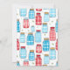 Design features a vibrant country motif of red and blue mason jars against a white background.