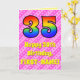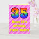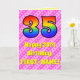 35th Birthday: Pink Stripes & Hearts, Rainbow # 35 Card