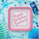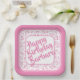 This numeric design has a pink and white random number pattern with a pink milestone number 35 repeated in varied sizes and angles. There is a white area in the centre for your text and pink-and-white squares around the rim.