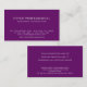 This elegant business card shows your informations in a clean and professional looking way using a modern white font on a berry coloured background. This design is suitable for all purposes. Business cards are a great marketing tool for business and small business owners to promote their services or products in many fields of activity like education, consulting, finance, insurance, real estate, health, beauty, fitness, lifestyle, car, IT, computers and many more. On this modern and elegant business card the name and business information lines are accentuated by a subtle shadow. You can choose your own background or font colour and you can also change the colour of the shadow by customising the design with Zazzles design tools. Customise the text on the backside of the card to tell customers and business partners about your service or products or delete text fields you don't need. If this business card is intended for private use you may not want to give away too many informations to protect your security. In this case you can use the front of the card for printing your name and email information on it and write your phone number on the back of the card when you hand it out. Show your professionalism to customers and friends and make a lasting impression by choosing Zazzles professional business card prints.