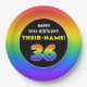36th Birthday: Colourful Rainbow # 36, Custom Name Paper Plate