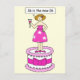 A cartoon lady standing on a large cake, wearing a pink dress and holding a cocktail , saying '36 is the new 26'.