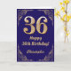 36th Birthday Navy Blue and Gold Glitter Frame Card