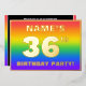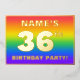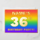 The front of this vibrant and fun thirty-sixth birthday celebration foil invitation card design features a custom name, a large number “36th”, the message “BIRTHDAY PARTY!”, and a border. The background of the front features a joyful, colourful, rainbow spectrum inspired gradient pattern. The back features personalised details about the event, such as the date, time, location/venue, and any other relevant information. Customised invitations like these might be a fun way to invite attendees/guests to a birthday gathering being held to celebrate somebody’s 36th birthday. [~Z0000599]