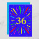 36th Birthday party invitation. Add a name and your details to make a fantastic birthday party invitation. An explosive party time invitation! What a wonderful way to send out party invitations. The words 'Party Time' in bright colours with an explosion of bright colours and stars.