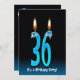 Aqua and blue gradient background with eyeballs on candles for 36th Birthday party invitation.