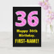 36th Birthday: Pink Stripes and Hearts "36" + Name Card