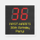 This geeky and silly birthday-themed paper napkin design features a large number "36" having a red seven segment digital display inspired look, along with a personalised name and the message "36th Birthday Party!" in nerdy retro style yellow text, on a black coloured background. Fun, customisable paper napkins like this might be used at a celebration being held to honour somebody’s thirty sixth birthday. [~Z0000388]