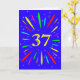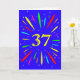 An explosive 37th birthday card! What a wonderful way to send birthday greetings. The number 37 in bright yellow with an explosion of bright colours and stars.