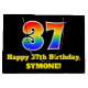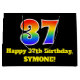 This fun and vibrant birthday gift bag design features a large number "37" with a rainbow spectrum gradient inspired pattern, along with the message "Happy 37th Birthday,", and a personalised name. It also has a black-coloured background. A colourful birthday themed gift-bag like this might be used when giving a gift or present in celebration of somebody’s thirty seventh birthday. [~Z0000521]