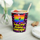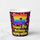 This fun and happy birthday themed paper cup design features a large number “37” with a rainbow spectrum gradient inspired pattern, along with the message “Happy 37th Birthday,”, and an editable name. The background features a pattern of purple, red, and pink heart shapes of various sizes. Upbeat, loving paper cups like this might be fun to use at a birthday celebration being held to honour somebody’s 37th birthday. [~Z0000548]