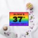 The front of this exciting thirty-seventh birthday party foil invitation card design features a custom name, a large number “37th”, the message “BIRTHDAY PARTY!”, and a border. The background of the front features a fun, colourful, rainbow spectrum inspired gradient pattern. The back features personalised details about the event, such as the date, time, venue, and any other information that may be useful. Customised invitations like these might be a fun way to invite attendees/guests to a birthday gathering being held to celebrate somebody’s 37th birthday. [~Z0000599]