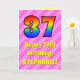 37th Birthday: Pink Stripes & Hearts, Rainbow # 37 Card
