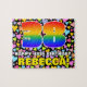 This eye-catching and colourful birthday themed jigsaw puzzle design features a large number “38” having a multicolored rainbow spectrum inspired gradient pattern. It also features the message “HAPPY 38th BIRTHDAY,”, and an editable recipient name. The background has an upbeat pattern of heart shapes with various colours and sizes. A fun, customised birthday puzzle like this might be a fun way to deliver birthday wishes to somebody who is celebrating their thirty-eighth birthday. [~Z0000611]