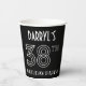 This elegant 1920s-1930s era inspired art deco look birthday-themed paper cup design features an editable name, plus the message “38TH BIRTHDAY PARTY!”. The number “38TH” has a fancy geometric lined appearance. Stylish birthday themed paper cups like these might be used at a party in celebration of somebody’s thirty-eighth birthday, or some other 38th event. [~Z0000658]