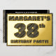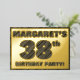 The front of this bold thirty-eighth birthday party foil invitation card features a custom name, a large number “38th”, the message “BIRTHDAY PARTY!”, and a border, all featuring a rustic, yet elegant, faux wood grain appearance inspired pattern. The back features personalised details about the event, such as the date, time, location/venue, and any other information that may be relevant. Personalised invitations like these might be used to invite guests to a birthday party being held in celebration of somebody’s 38th birthday. [~Z0000595]