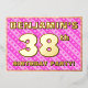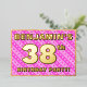 The front of this loving and joyful thirty-eighth birthday party/celebration foil invitation card design features a custom name, a large number “38th”, the message “BIRTHDAY PARTY!”, and a border. The background of the front features an upbeat pattern with dark pink and light pink stripes and heart shapes. The back features personalised details about the event, such as the date, time, venue, and any other information that may be useful. Customised invitations like these might be a fun way to invite guests/attendees to a birthday gathering/party being held to honour somebody’s 38th birthday. [~Z0000603]