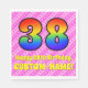 This happy and upbeat 38th birthday themed paper napkin design features a large number "38" having a colourful rainbow spectrum inspired gradient pattern. It also features the message "Happy 38th Birthday,", and a customisable name. The background features a cheerful pattern of dark pink and light pink stripes containing loving pink heart shapes. Birthday themed paper napkins like this might be fun to use at a celebration being held to honour somebody who is celebrating their thirty eighth birthday. [~Z0000417]