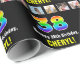 This upbeat and bold birthday-themed wrapping paper design features a large number “38“ having a multicolor rainbow spectrum inspired gradient pattern, plus the message “Happy 38th Birthday,“ and a customisable recipient name. There are also photos that can be personalised, perhaps with photos of the recipient, the recipient’s family and friends, and/or the sender(s) of the gift. Eye-catching wrapping paper like this might be a fun way of wrapping a birthday present or gift being given to somebody who is celebrating their thirty-eighth birthday. (Photography © Storytree Studios, Stanford, CA.) [~Z0000670]