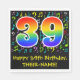 This fun, colourful, and vibrant birthday themed paper napkin design features a large number "39" having a rainbow spectrum gradient inspired pattern. It also features the message "Happy 39th Birthday,", and an editable name. Part of the background features a pattern of various music notes and symbols having a variety of colours and sizes. Fun, editable birthday themed paper napkins like this might be used at a musician’s, a singer’s, a composer’s, or somebody else’s thirty ninth birthday celebration. [~Z0000421]