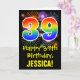 39th Birthday: Fun Fireworks Pattern + Rainbow 39 Card