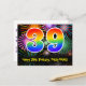 39th Birthday – Fun Fireworks Pattern + Rainbow 39 Postcard