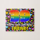 This colourful and vibrant birthday-themed jigsaw puzzle design features a large number “39” having a multicolored rainbow spectrum inspired gradient pattern. It also features the message “HAPPY 39th BIRTHDAY,”, and a personalised recipient name. The background features a joyful pattern of loving hearts having various colours and sizes. A bold, editable birthday puzzle like this might be a fun way to send a birthday greeting message to somebody who is celebrating their thirty-ninth birthday. [~Z0000611]