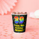 This cheerful and exciting music-themed birthday paper cup design features a large number “39” having a rainbow spectrum gradient inspired pattern. It also features the message “Happy 39th Birthday,”, and a customisable name. The background features a multicolored pattern having music notes and symbols of various colours and sizes. Vibrant, colourful paper cups like this might be fun to use at a birthday party/celebration being held in celebration of somebody’s thirty ninth birthday. [~Z0000541]