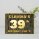 The front of this bold thirty-ninth birthday celebration foil invitation card features a customisable name, a large number “39th”, the message “BIRTHDAY PARTY!”, and a border, all in foil. The background of the front features a rustic, yet elegant, faux wood grain look inspired pattern. The back features personalised details about the event, such as the date, time, venue, and any other important information. Personalised invitations like these might be used to invite attendees/guests to a birthday party being held in celebration of somebody’s 39th birthday. [~Z0000598]
