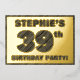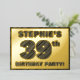 The front of this bold thirty-ninth birthday celebration foil invitation card features a custom name, a large number “39th”, the message “BIRTHDAY PARTY!”, and a border, all featuring a rustic, yet elegant, faux wood grain appearance inspired pattern. The back features personalised details about the event, such as the date, time, location, and any other relevant information. Personalised invitations like these might be used to invite attendees to a birthday party being held to celebrate somebody’s 39th birthday. [~Z0000595]
