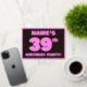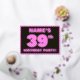 The front of this fun and bold thirty-ninth birthday celebration/party foil invitation/announcement card features a custom name, a large number “39th”, the message “BIRTHDAY PARTY!”, and a border, all featuring a feminine dark pink and light pink striped pattern. The back features personalised details about the event, such as the date, time, venue, and any other important information. Editable invitations like these might be used to invite attendees to a birthday party being held to celebrate somebody’s 39th birthday. [~Z0000597]