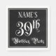 This luxurious and opulent birthday paper napkin design features an editable name and the message “39th Birthday Party”. The large number “39th” and the words “Birthday Party” are in ornate script-style text, and the background is coloured black by default (although it can be customised). Ornate, opulent paper napkins like this might be useful to have at a birthday celebration being held in celebration of somebody’s 39th birthday. [~Z0000563]