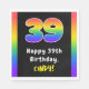This eye-catching and vibrant birthday themed paper napkin design features a large number “39“ with a multicolor rainbow spectrum inspired gradient pattern, along with the message “Happy 39th Birthday,”, and a custom recipient name. Birthday themed paper napkins like this might be fun to use at a birthday party being held for somebody who is celebrating their 39th birthday. [~Z0000629]