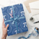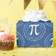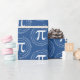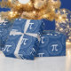 These blue and white Pi Day gift wrapping paper features a 3.14 spiral Pi number and a Pi symbol pattern. The background colour is easy to customise inside the design tool.