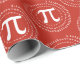 These red and white Pi Day gift wrapping paper features a 3.14 spiral Pi number and a Pi symbol pattern. The background colour is easy to customise inside the design tool.