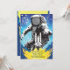 A wonderful design featuring a suited astronaut in outer space with an overlay of a space vehicle blasting off. The card is easy to customise with your wording, font, font colour and choice of six paper types.