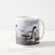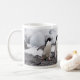 Three adorable Adele Penguins photographed in Antarctica seem to run across this coffee mug.