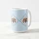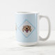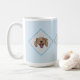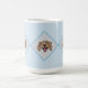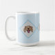 Enjoy your beverage of choice in this mug sporting three smiling retriever faces resting on a blue diamond background.