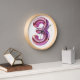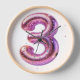 A pink number three balloon adorned with colourful confetti and sparkling glitter