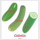 Funny graphic of various cucumbers, one whole and uncut, one curved and one cut on one end to customise with your own greeting, name, message, etc