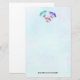 Stationery paper with a pretty design. 3 watercolor butterflies, painted pink, purple and green. A light blue watercolor background with hints of light pink.