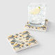 The coasters are gorgeous, a quality feel and heavy weight. They look like a precious archeological find. A rustic stone juxtaposed with a modern floral black and white print. I like the way the print goes slightly imperfect on the cut stone edges giving them a kind-of natural beauty.