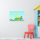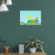 3 Dinosaur Friends Poster. Three cute little dinos: green Stegosaurus, orange Diplodocus and blue triceratops on a happy sunny day poster. This bright poster print is fully customisable, add your text and images! A great cartoon dinosaur poster for the little big dino fan!
